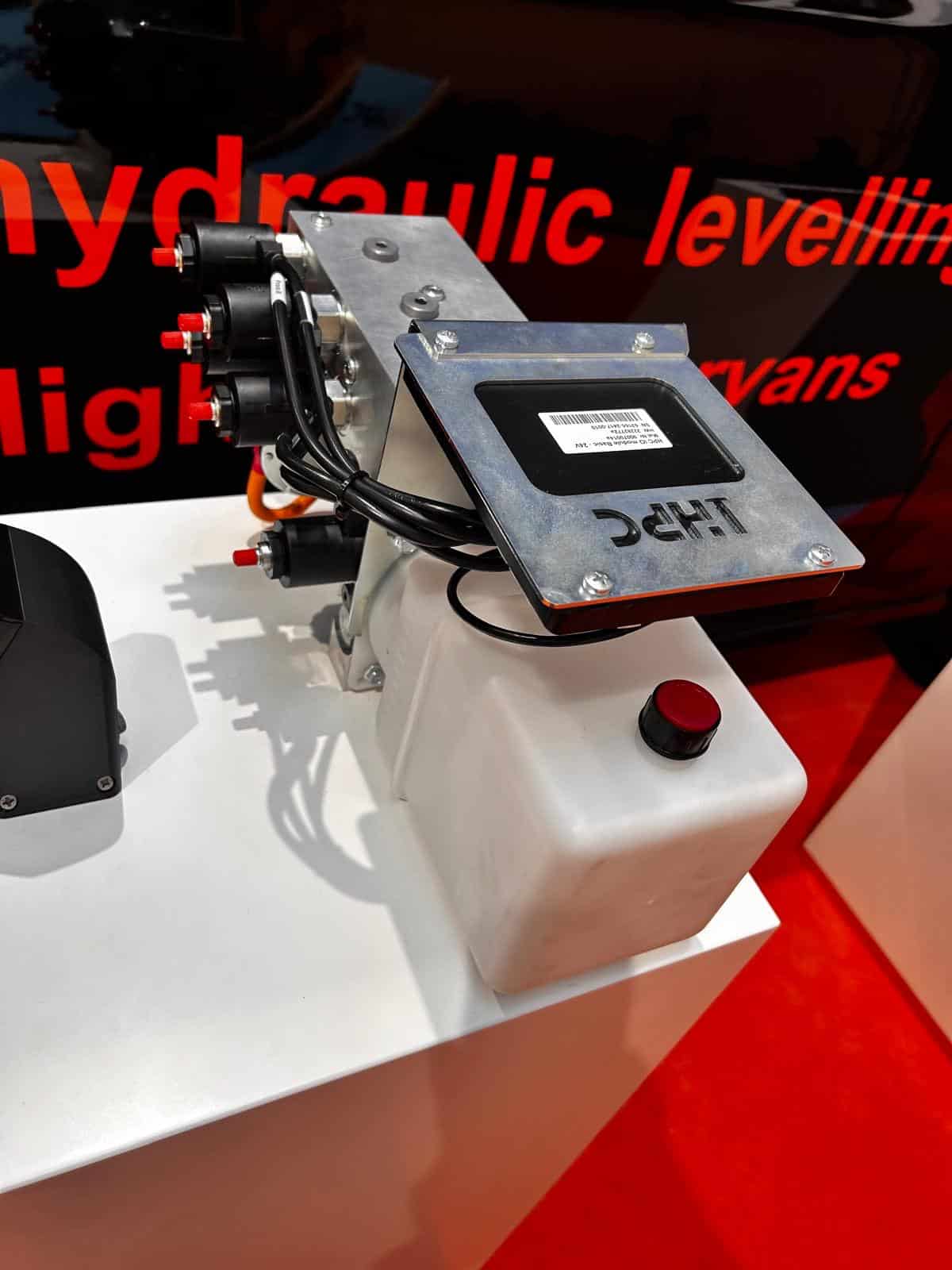 The result is a true hydraulic levelling system designed specifically for lightweight platforms rather than adapted from heavier motorhome systems.